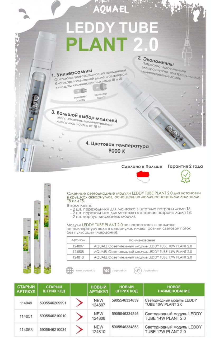 Комплектация: 1. Крышка со светодиодным модулем освещения LEDDY TUBE 14W SUNNY D&N 2.0 (режим "ДЕНЬ": 7000 K, 1480 лм) (2 шт.), 2. Аквариум с нижней опорной рамкой, 3. Инструкция с гарантийным талоном.
