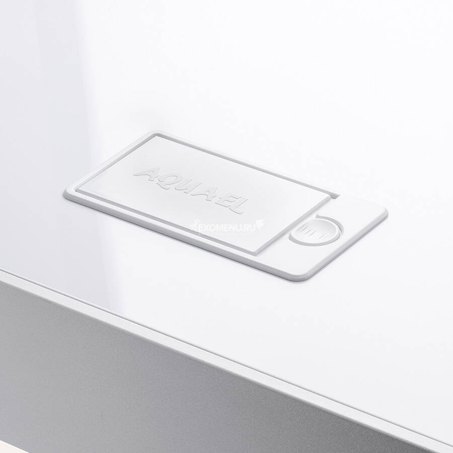 Нижняя рамка прекрасно сочетается с элегантной крышкой, оснащенной запатентованной системой Smart Open (Смарт Оупен). Система позволяет легко открывать и удерживать крышку в нужном положении. Для кормления обитателей предусмотрен открывающийся лючок. На задней стенке аквариума предусмотрены технические отверстия для размещения шлангов внешних фильтров. Через них также удобно выводить провода.