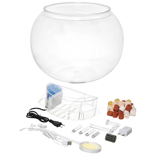 Аквариумный набор Naribo с оригинальным аэратором. В набор входит: аквариум-шар (пластиковый) объемом 10л, фильтр 4Вт, наполнители для фильтра (губка и керамические кольца) и светильник, работающий от USB адаптера, а также аэратор-мельница. Аквариум, изготовлен из высококачественного пластика. Производительность фильтра 300л/ч. Мощность светильника 3Вт. Данный набор идеально подходит для маленьких видов рыб. Вес: 1,13 кг. Упаковка: по 1 шт