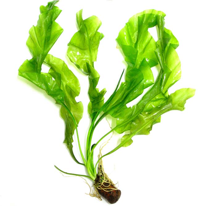 Апоногетон ульвовидный (Aponogeton ulvaceus) - крупное длинностебельное растение. Листья удлиненные, на длинных черенках с выраженным сетчатым рисунком жилок. Края крупно волнистые, цвет – светло-зеленый.