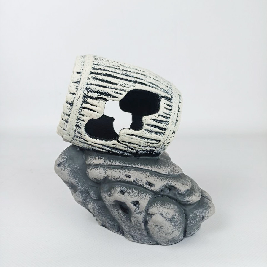 Декорация Бочка на камнях белая, 19,5х15х17