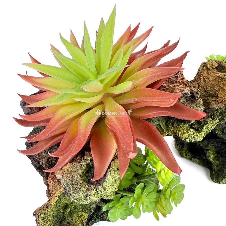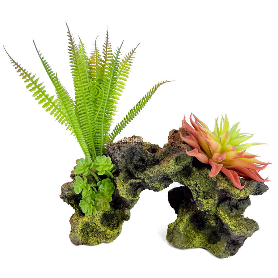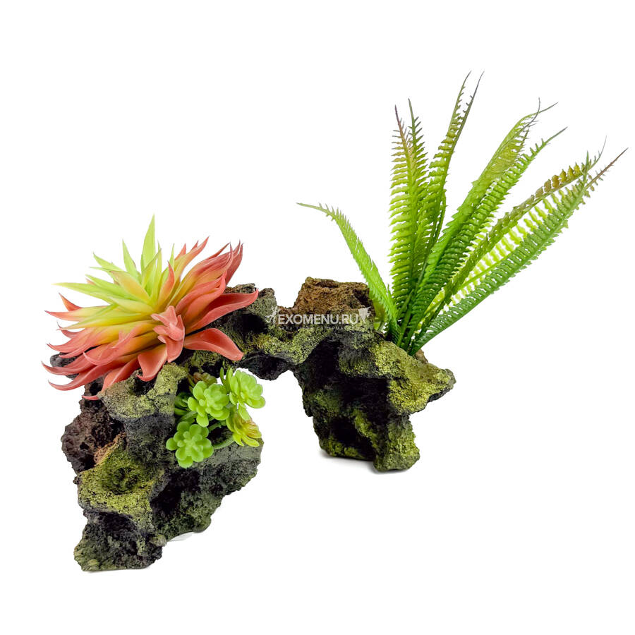 Создайте живописную и гармоничную природную обстановку в вашем террариуме с помощью этого декоративного искусственного растения на камне. Это отличное решение для тех, кто хочет добавить природных акцентов, не тратя время на уход и полив живых растений. Искусственное растение из высококачественного пластика не увядает, не требует специального ухода и выглядит так же свежо и естественно, как настоящее.