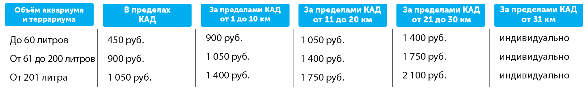 От 3000 руб. (рассчитывается индивидуально) – если аквариум, террариум или тумба больше 300 литров или отсутствует грузовой лифт;