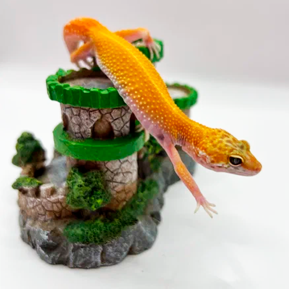 Эублефары обитают в засушливых биотопах, но доступ к свежей воде у них должен быть постоянно. Поставьте в объем устойчивую мисочку для воды, которую ящерица не сможет случайно перевернуть. Идеальным вариантом станет поилка с небольшой лесенкой внутри, это позволит кормовым насекомым самостоятельно выбираться из нее при случайном падении.