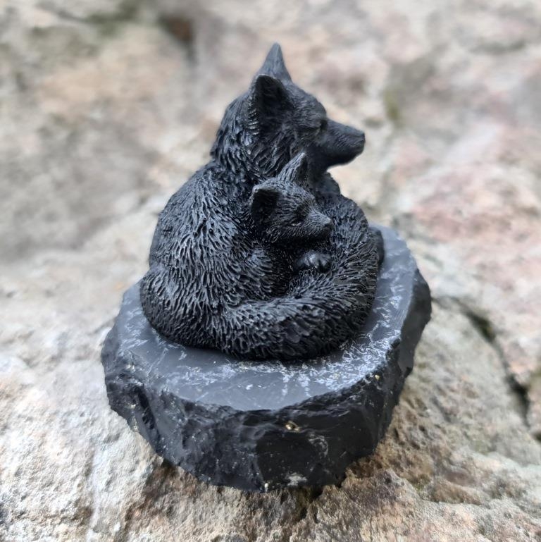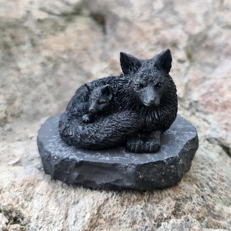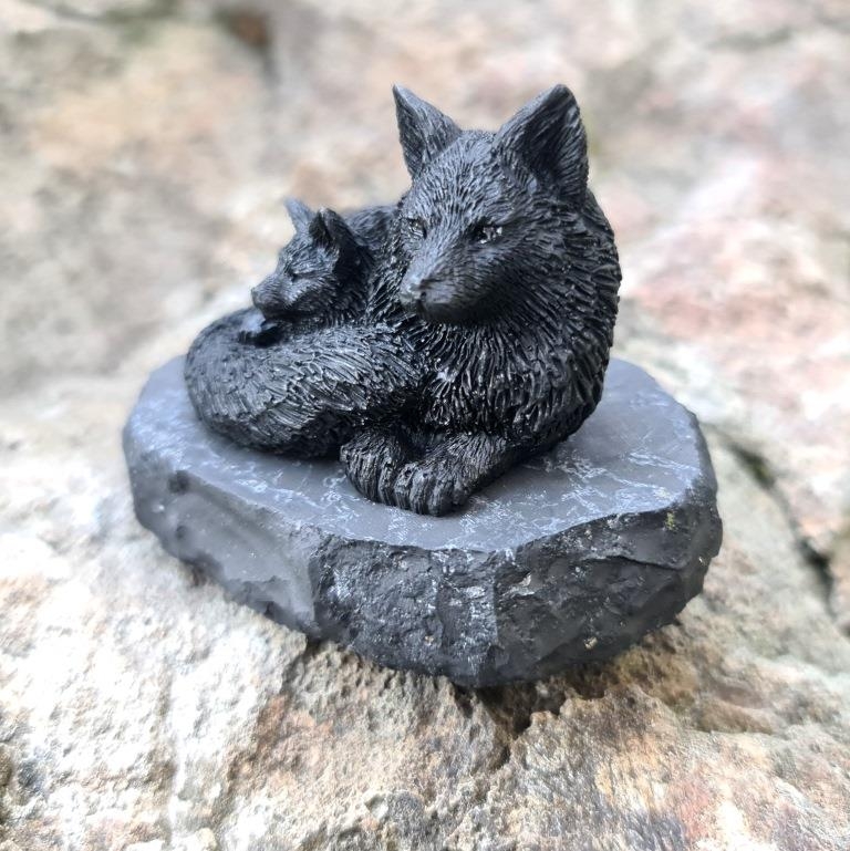 Фигурка Лиса с лисенком, шунгит
