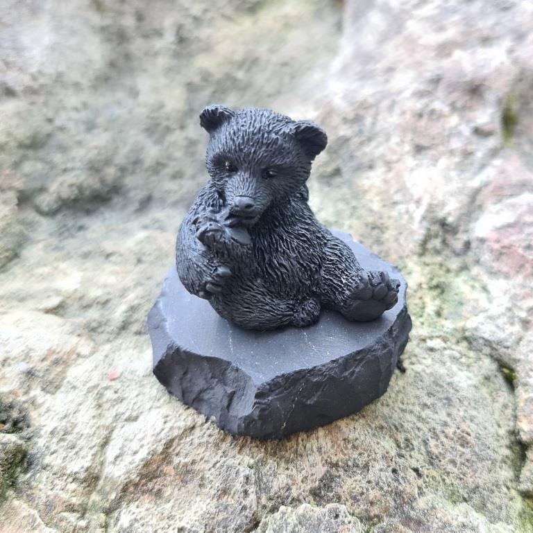 Фигурка изготовлена из шунгитового порошка (70%) с добавлением связующего состава, на подставке из шунгита.