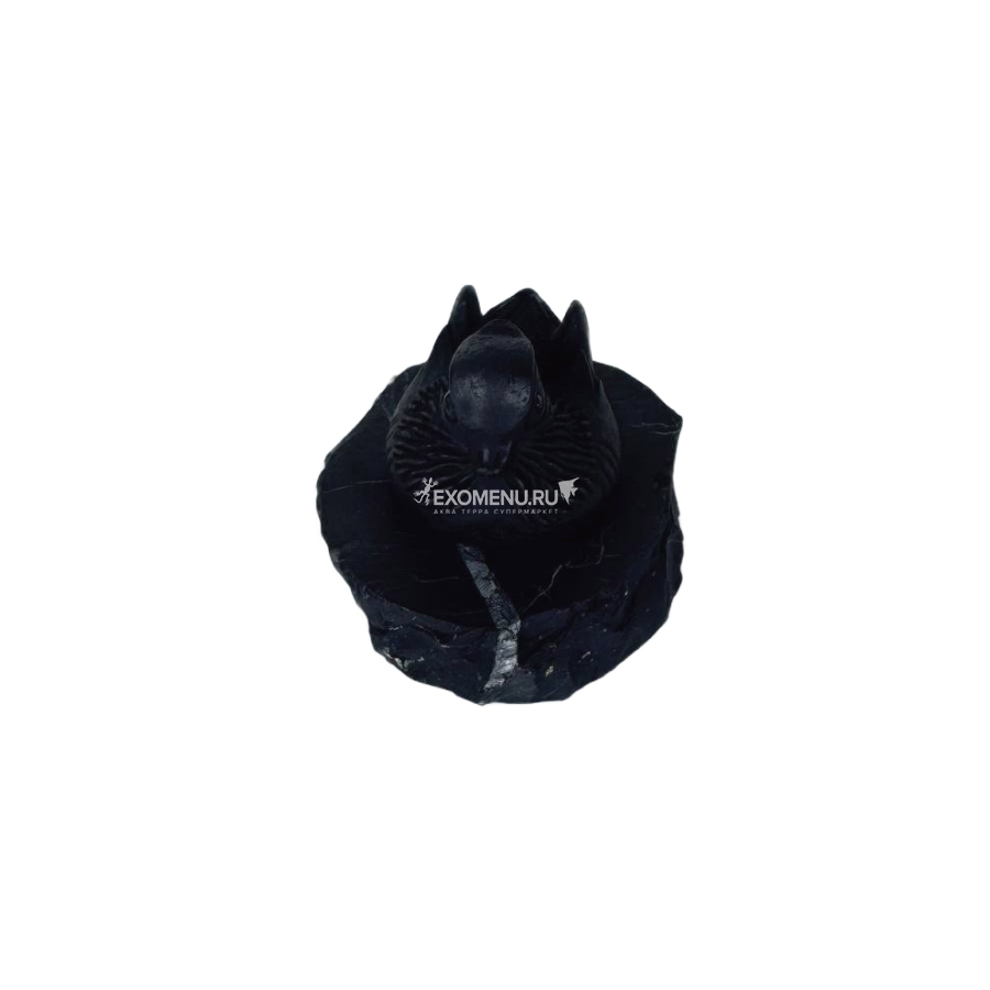 Фигурка изготовлена из шунгитового порошка (70%) с добавлением связующего состава, на подставке из шунгита.