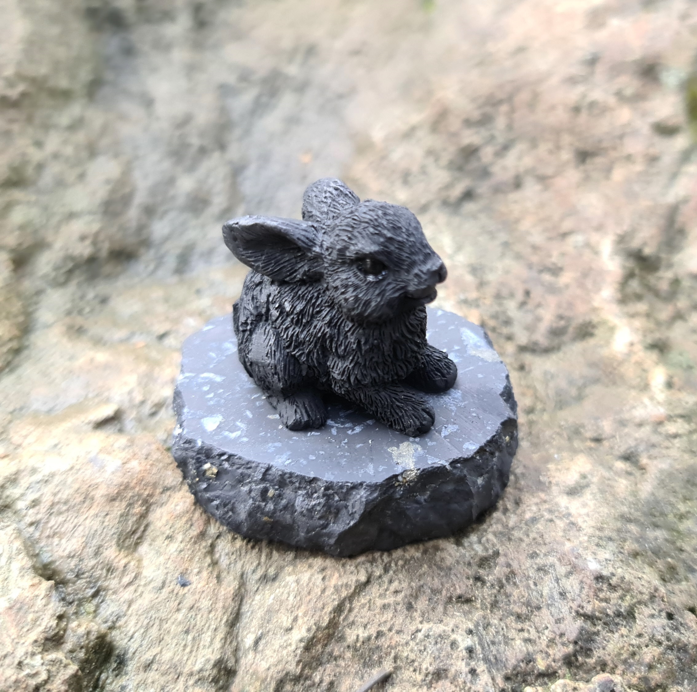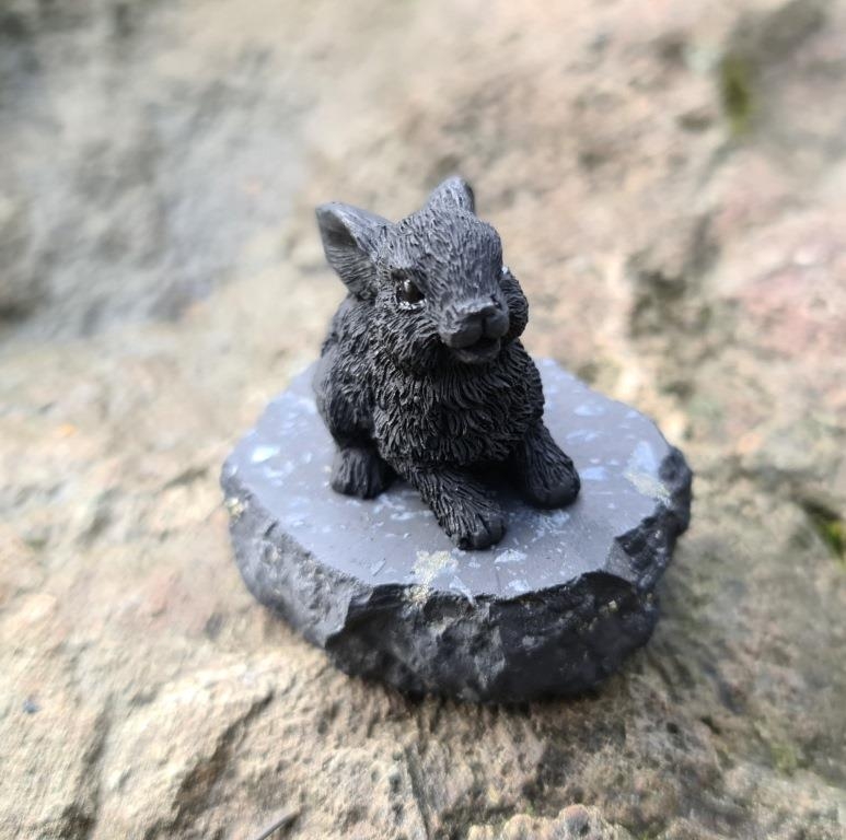 Фигурка изготовлена из шунгитового порошка (70%) с добавлением связующего состава, на подставке из шунгита.