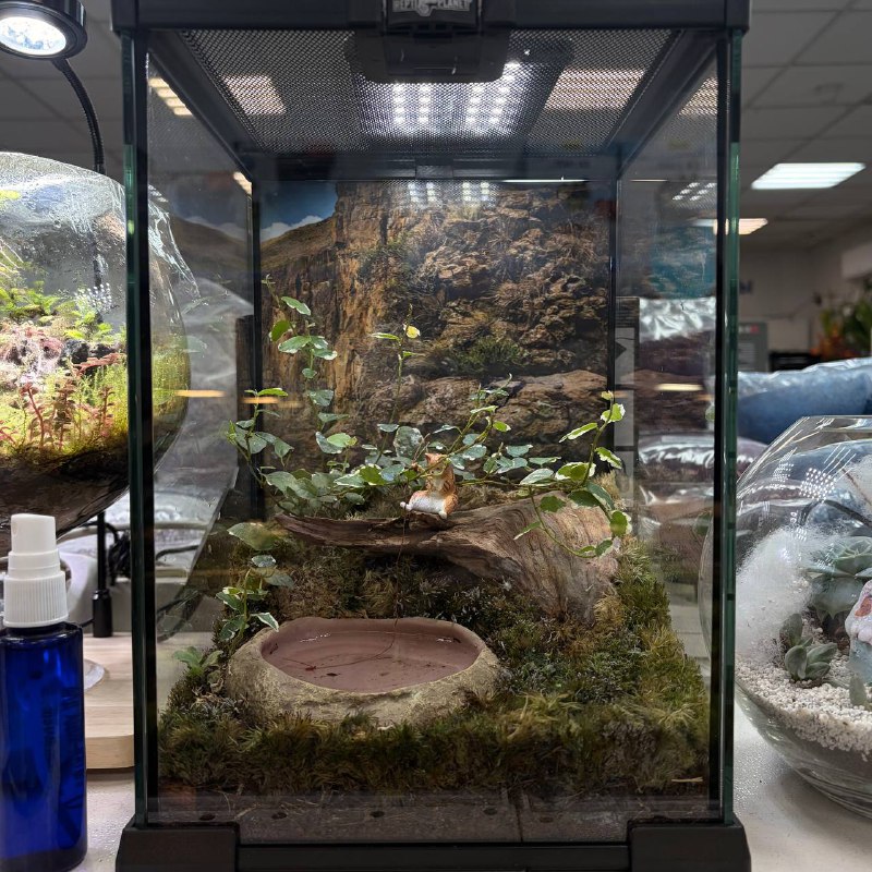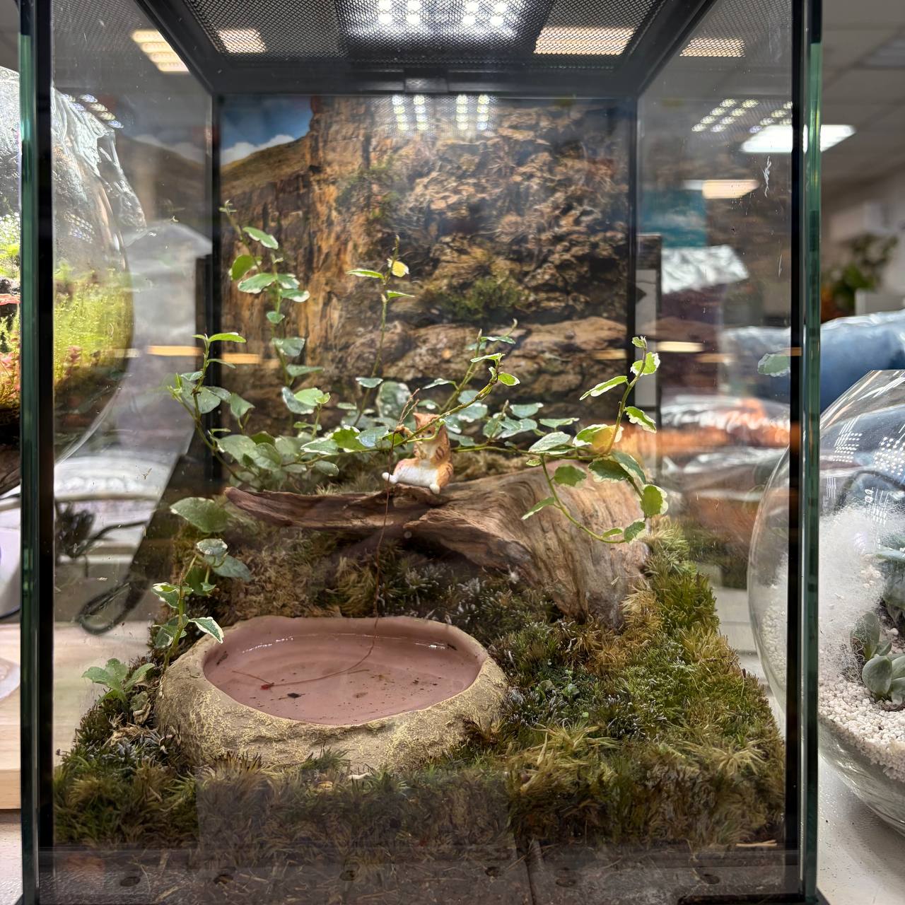 Флорариумный вариант, который отлично подойдет для рабочего стола. В таком комплекте также отлично будет чувствовать себя богомол.