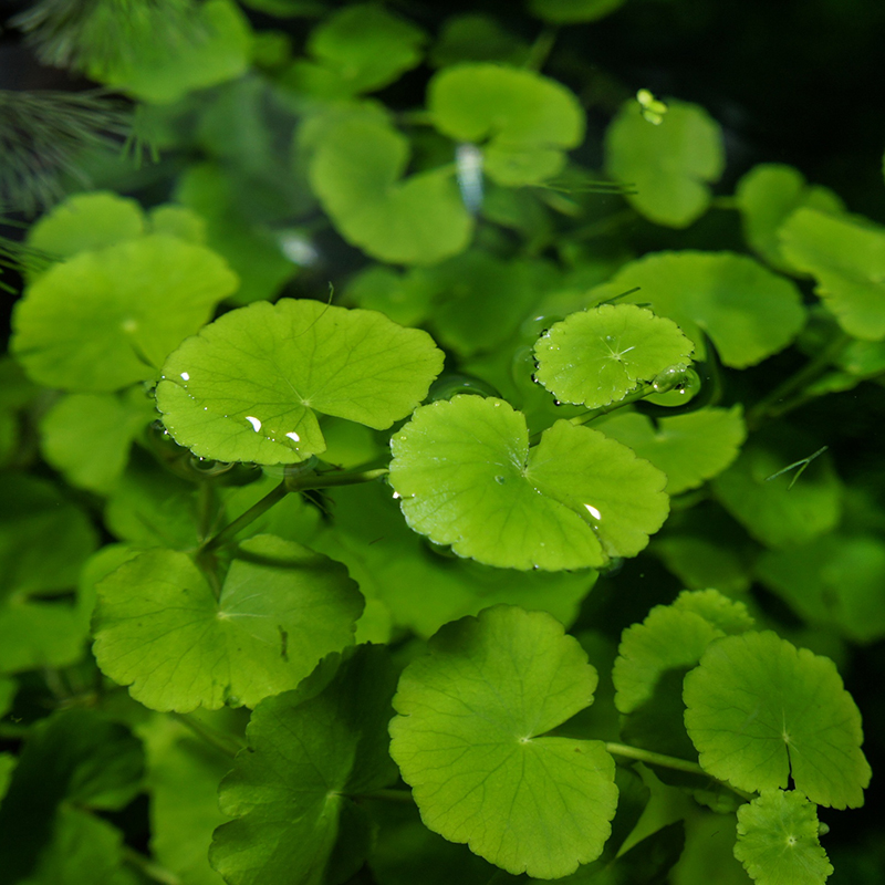 Гидрокотила белоголовая в природе широко распространена в стоячих и проточных водоемах тропических областей Южной Америки. Растение известно также под названием щитолистник белоголовый. Представляет собой оригинальное длинностебельное земноводное растение с округлыми листьями светло-зеленого цвета диаметром до 4 см. В высоту растение достигает 50 см.