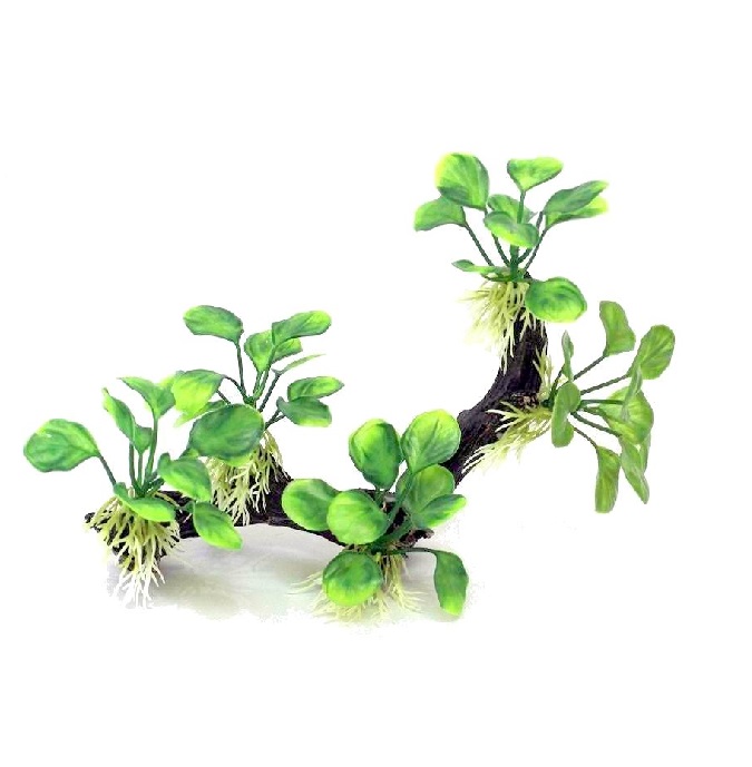 Реалистичная композиция, имитирующая корягу с растениями. Коряга и искусственные растения выполнены из пластика очень искусно и детально, в воде композицию не отличить от натурального пейзажа. Композиция идеально подойдет для аквариума с цихлидами, золотыми рыбками и прочими рыбами, которые могут съесть или выкорчевать растения из грунта.
