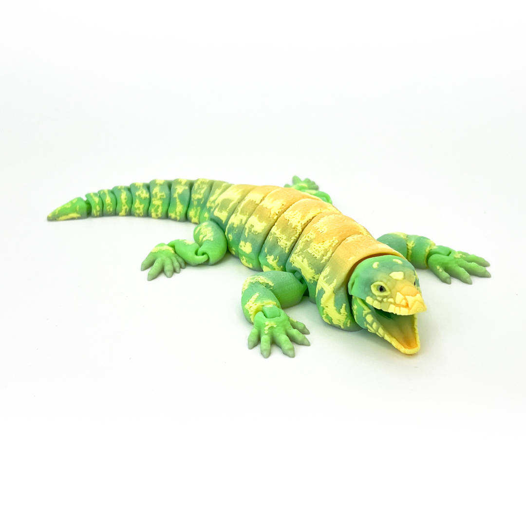 Игрушка подвижная 3D принтер Ящерица Тегу зелено-оранжевая