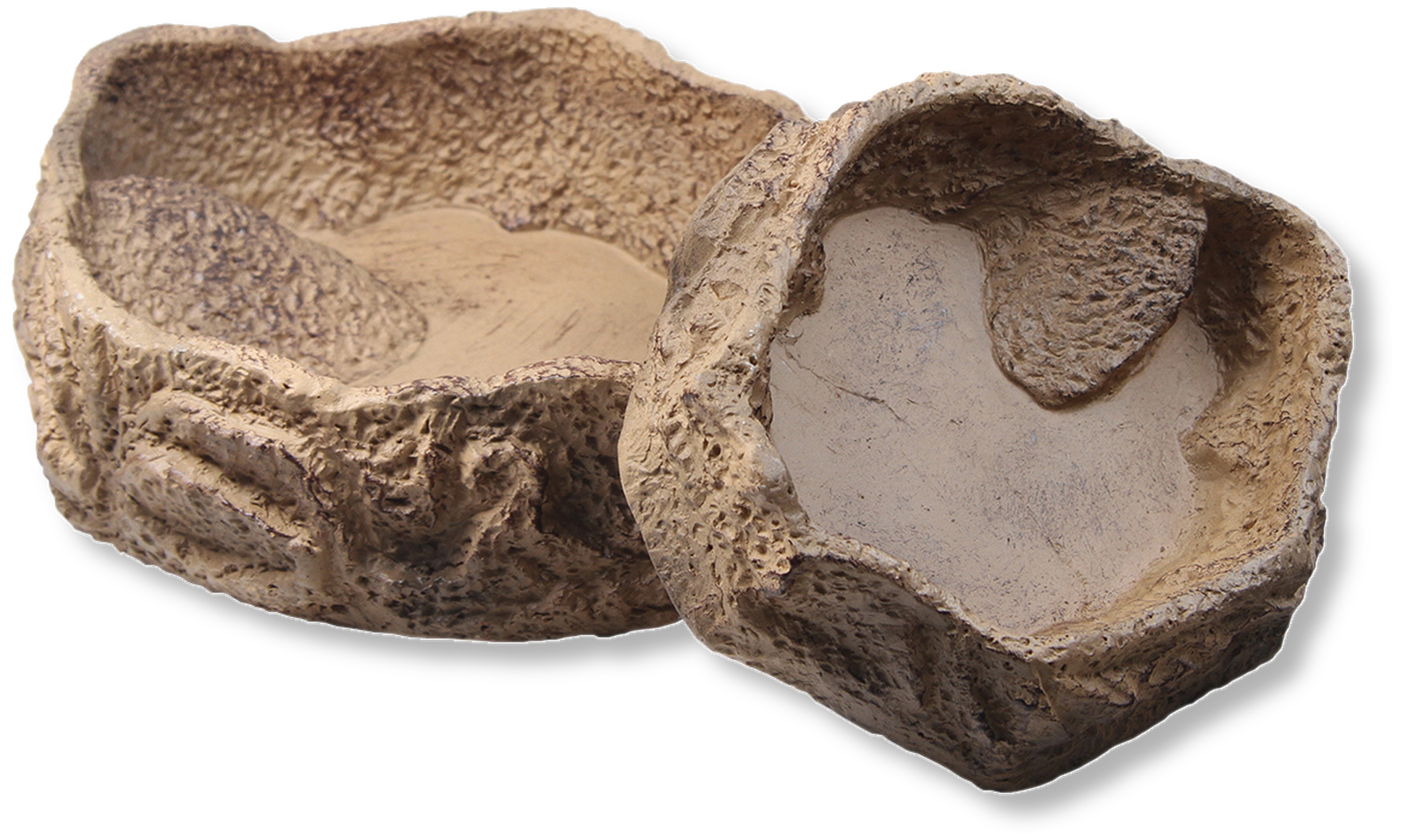 - Индивидуальное оформление террариума: миска под бежевый песчаник для корма, воды или купания.