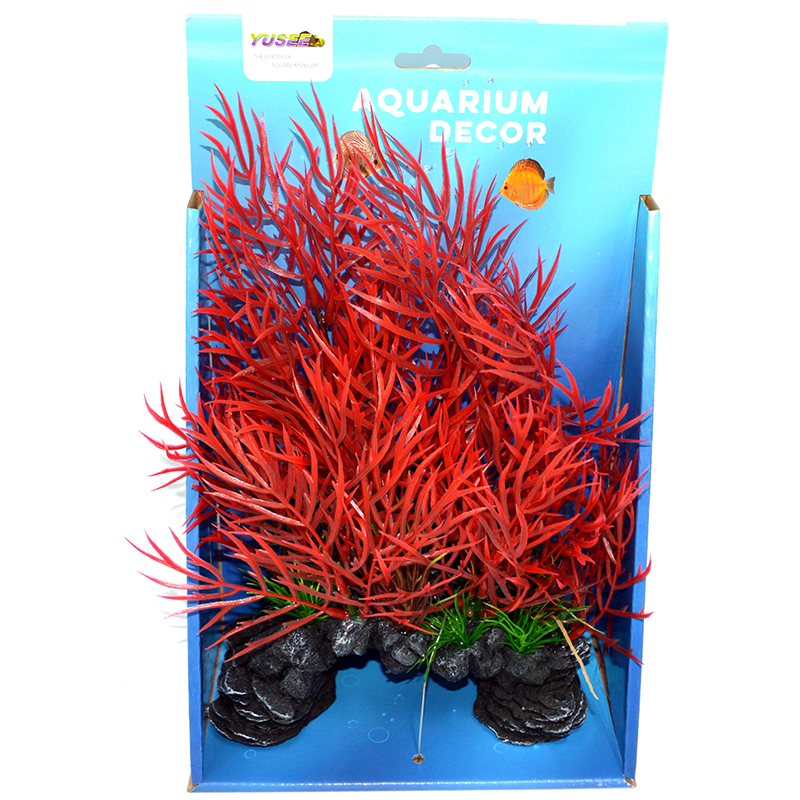Композиция Скала с красными растениями, 18х9х30 см (YS-192213)