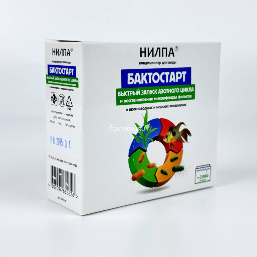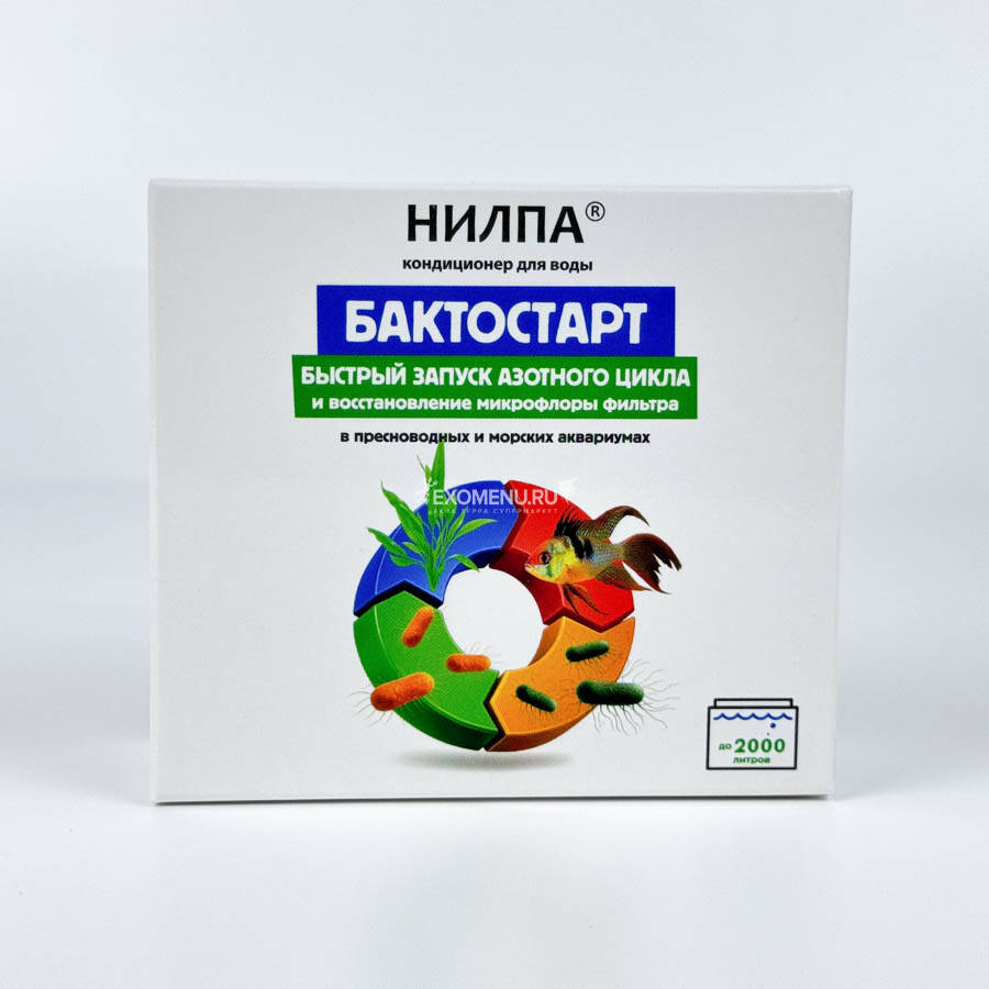 НИЛПА® БАКТОСТАРТ – сухой кондиционер-концентрат для быстрого запуска азотного цикла в аквариуме и восстановления нарушенной микрофлоры биофильтра.