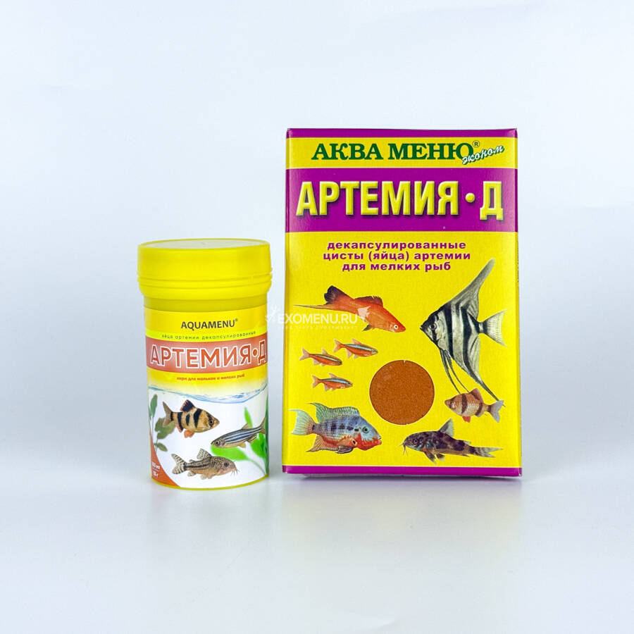 АРТЕМИЯ•Д — декапсулированные яйца артемии — это эмбрионы артемии, лишенные твердой защитной оболочки. Они содержат все самые необходимые элементы питания мальков. Специальным методом цисты (яйца) жаброногого рачка Artemia salina освобождают от наружной жестко оболочки (декапсуляция) и высушивают. Эти декапсулированные цисты представляют собой отличный белковый корм со всеми пищевыми ингредиентами, сбалансированными природой.