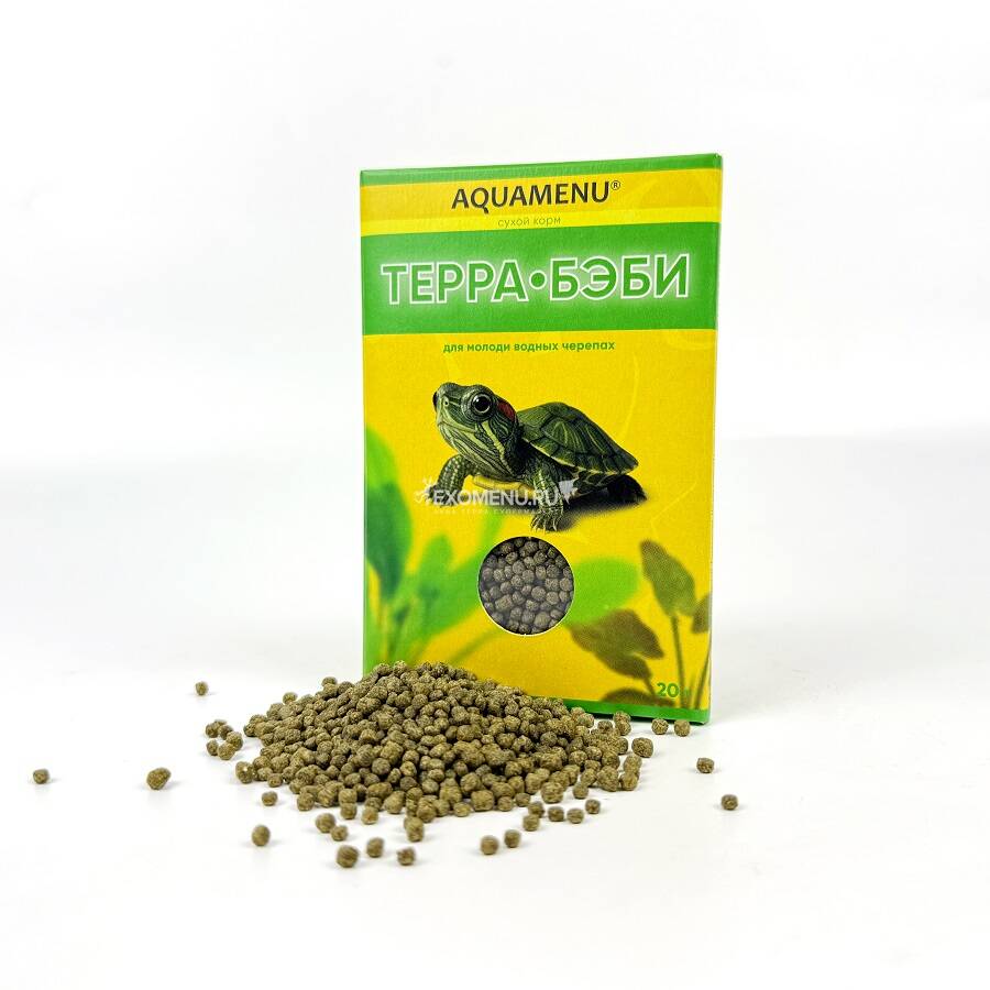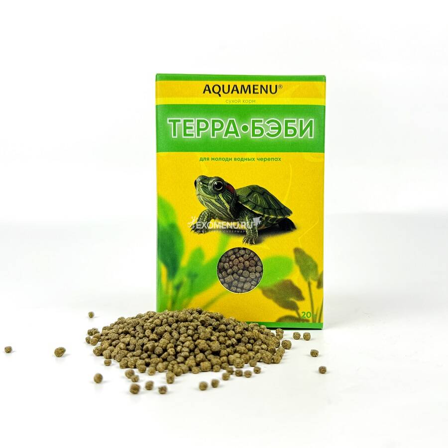 АКВА МЕНЮ® ТЕРРА-БЭБИ – сухой корм для молоди водных черепах. Содержит полноценный набор растительных и животных ингредиентов для здорового роста, витамины и микроэлементы для крепкого панциря, спирулину для яркой окраски и крепкого иммунитета.
