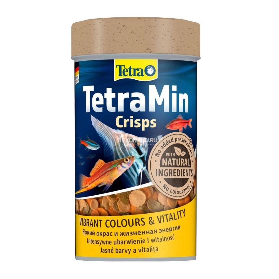 Основной корм в виде чипсов для всех видов декоративных рыб - высокая пищевая ценность достигается за счет запатентованного бережного производственного процесса: