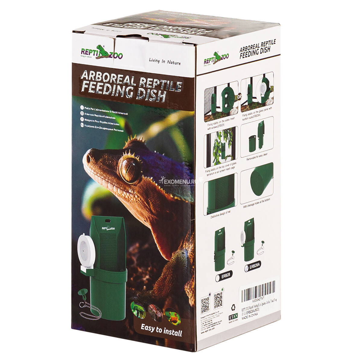 Подвесная кормушка Repti-Zoo предотвращает разбегание живых насекомых по террариуму и обеспечивает естественное кормовое поведение для древесных видов рептилий. Насекомые, помещённые внутрь, поднимаются по внутренней сетке, стимулируя хищный инстинкт животного за счёт движения.