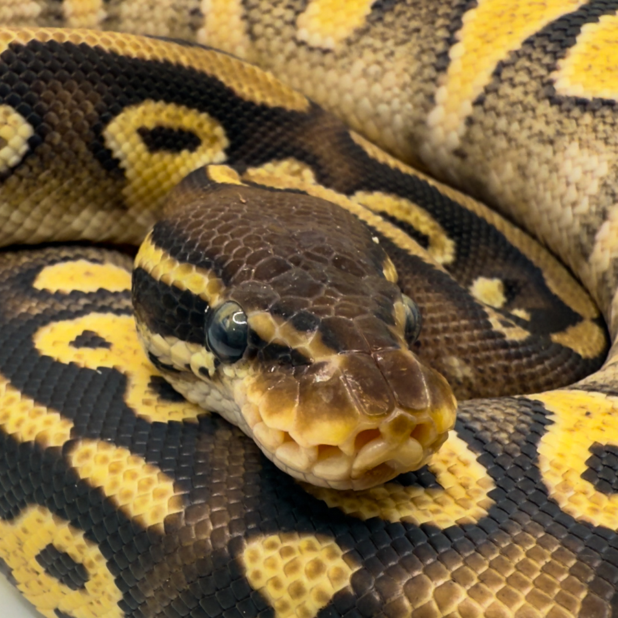 Королевский питон (региус) - это отличный выбор для начинающего террариумиста. Этих змей еще называют «ball python» или питон-шар, за их способность при опасности или стрессе скромно сворачиваться в тугой шарик и прятать голову в кольца. Имеет мощное тело с хорошо развитыми мыщцами. В природе обитает в Западной и Центральной Африке (от Сенегала до Нигерии и Камеруна). Самцы региусов редко достигают 110 см, а самки вырастают чуть крупнее – до 130-160 см. Для содержания подойдут террариумы горизонтального или кубического типа, длиной от 60 см, но самцам, в связи с их размером будет комфортно и в объеме с размерами 45х45х45 см. Идеальными террариумами станут 60х45х45, 90х45х45, 90х45х30 см.