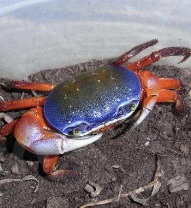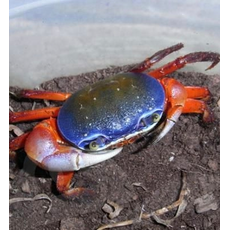 Cardisoma armatum (Радужный краб) - крупный, чрезвычайно красивый, отличающийся яркой трехцветной окраской краб. Создать приемлемые условия для его содержания в неволе достаточно просто. В природе они вырастают значительных размеров: диаметр тела может достигать 8-10 см, но в неволе они такими большими не вырастают, несмотря на продолжительность жизни 8-10 лет.