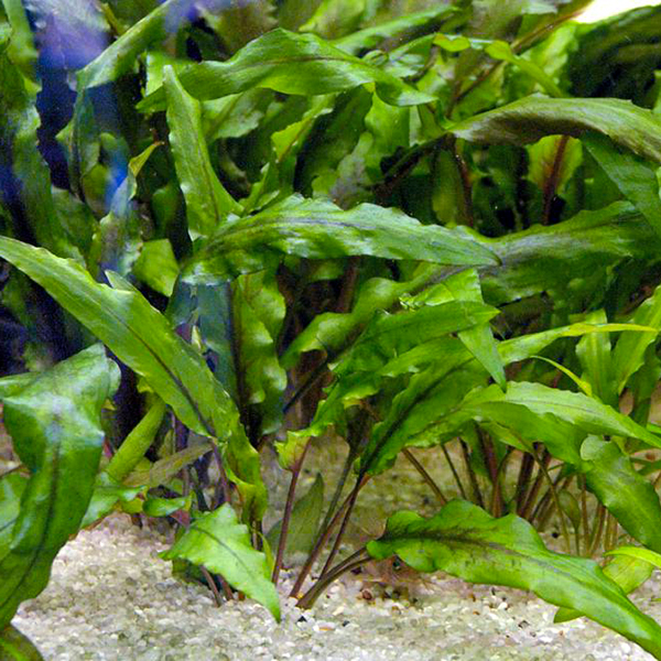 Красивая разновидность с гофрированными листьями, хорошо подходит для небольших аквариумов. В высоту растение достигает максимум 15-20 см, шириной каждой розетка при этом всего 8-15 см. Хорошо растет в жесткой воде. Для содержания лучше всего подходит нейтральная вода рН 6,5-7,5 температурой 24-28°C и жесткостью до dGH 15°. Освещение от низкого до яркого, растение прекрасно себя чувствует в тени более высоких соседей.