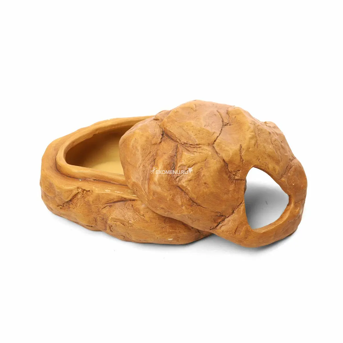 Укрытие для рептилий влажная камера "Фоссилия" состоит из двух частей, что облегчает задачу закладывания внутрь влажного грунта. Это позволяет легко и быстро создать влажную среду для вашего питомца.