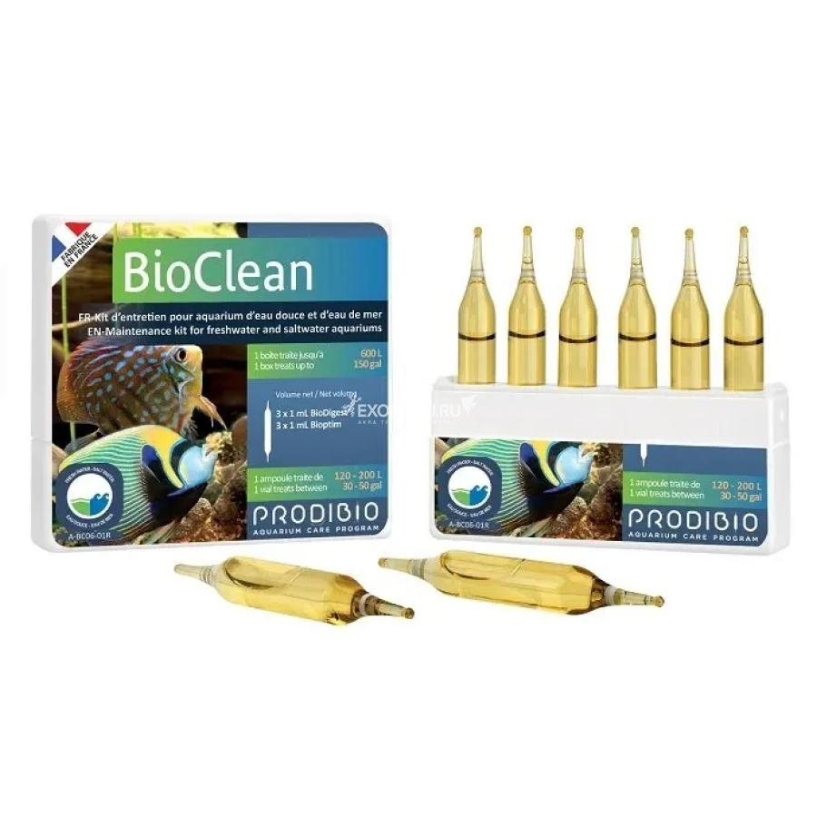 Набор добавок Prodibio Bioclean Fresh&Salt, для морского и пресноводного аквариума (BIO DIGEST+ BIOPTIM) (6шт)