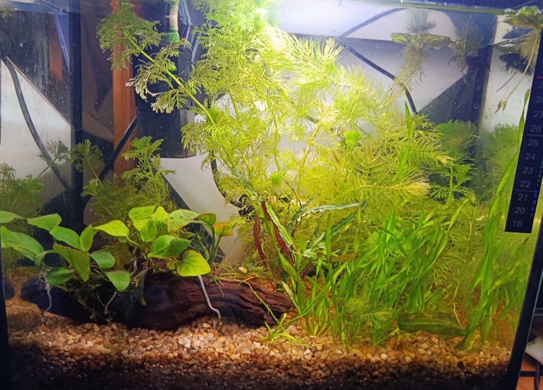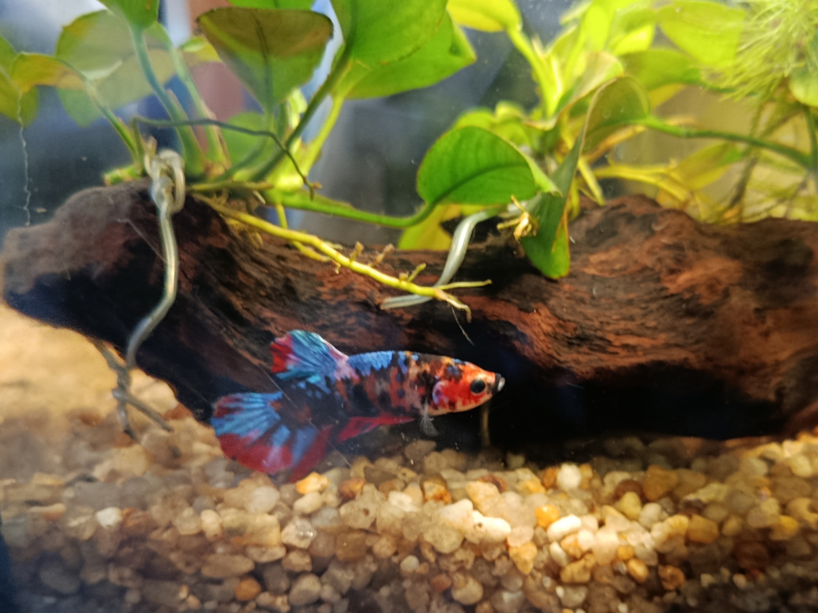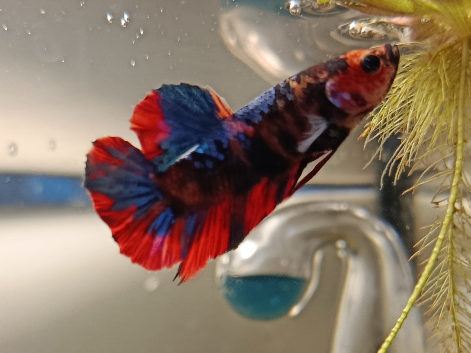 Из регулярного ухода нужно обязательно подменивать воду порядка 25% от объёма в неделю, так как накапливающиеся продукты распада прежде всего скажутся на состоянии плавников петушка. Что касается фильтра, то он не помешает, а вот кислород (аэрация), ему не нужны, он дышит с поверхности воды.