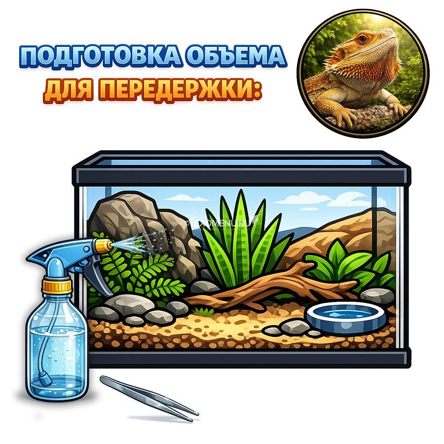 При подготовке учитываются особенности содержания ящериц: подбирается подходящий тип субстрата, обеспечивается необходимый уровень влажности, организуется укрытие и вентиляция, а также исключаются элементы, способные травмировать животное.