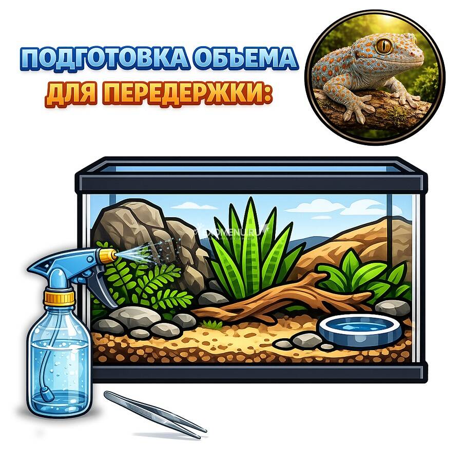 При подготовке учитываются особенности содержания ящериц: подбирается подходящий тип субстрата, обеспечивается необходимый уровень влажности, организуется укрытие и вентиляция, а также исключаются элементы, способные травмировать животное.