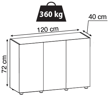 Усиленная тумба GLOSSY с легкостью выдержит вес самого аквариума, с водой, грунтом, декорациями и жителями подводного мира, что значительно меньше веса допустимой максимальной нагрузки на тумбу. Это подтверждено контрольными испытаниями.
