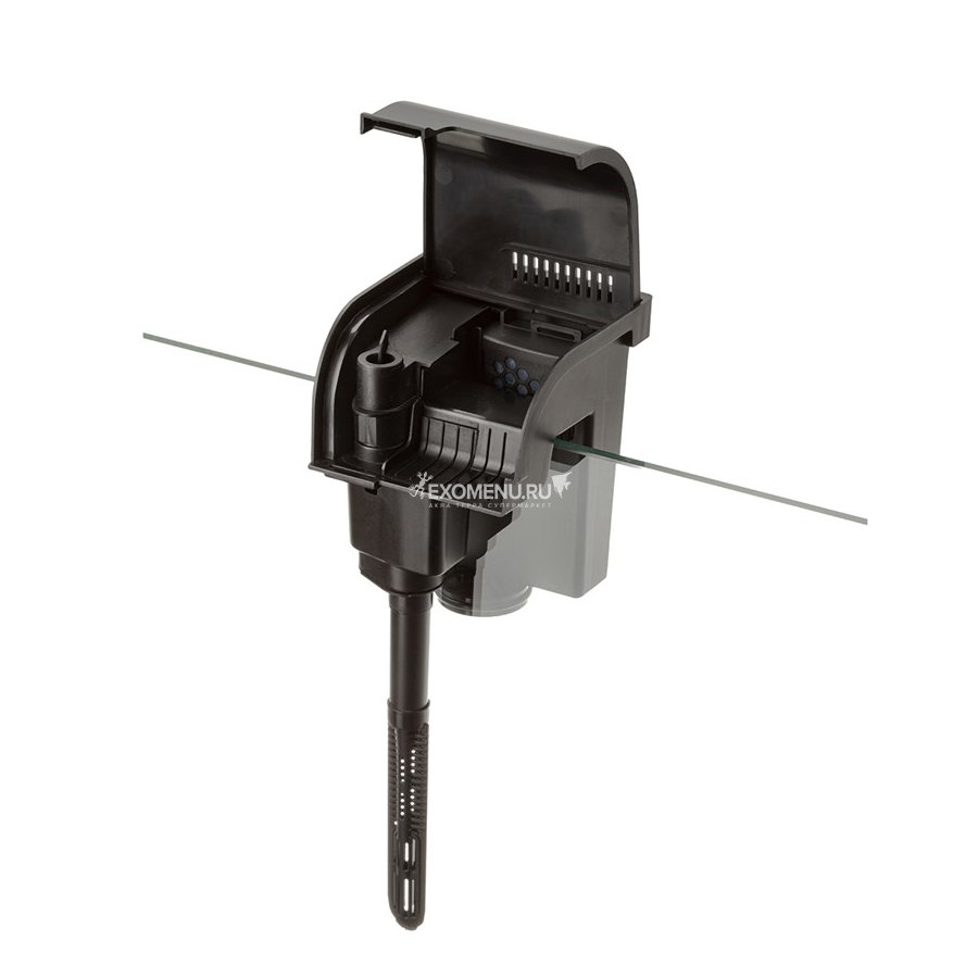 Водозаборная трубка состоит из 2 частей, что позволяет изменять ее длину в соответствии с глубиной аквариума. Всасывающая часть трубки имеет перфорацию, задерживающая крупные частицы грязи. Дополнительно на неё можно надеть губку - префильтр.
