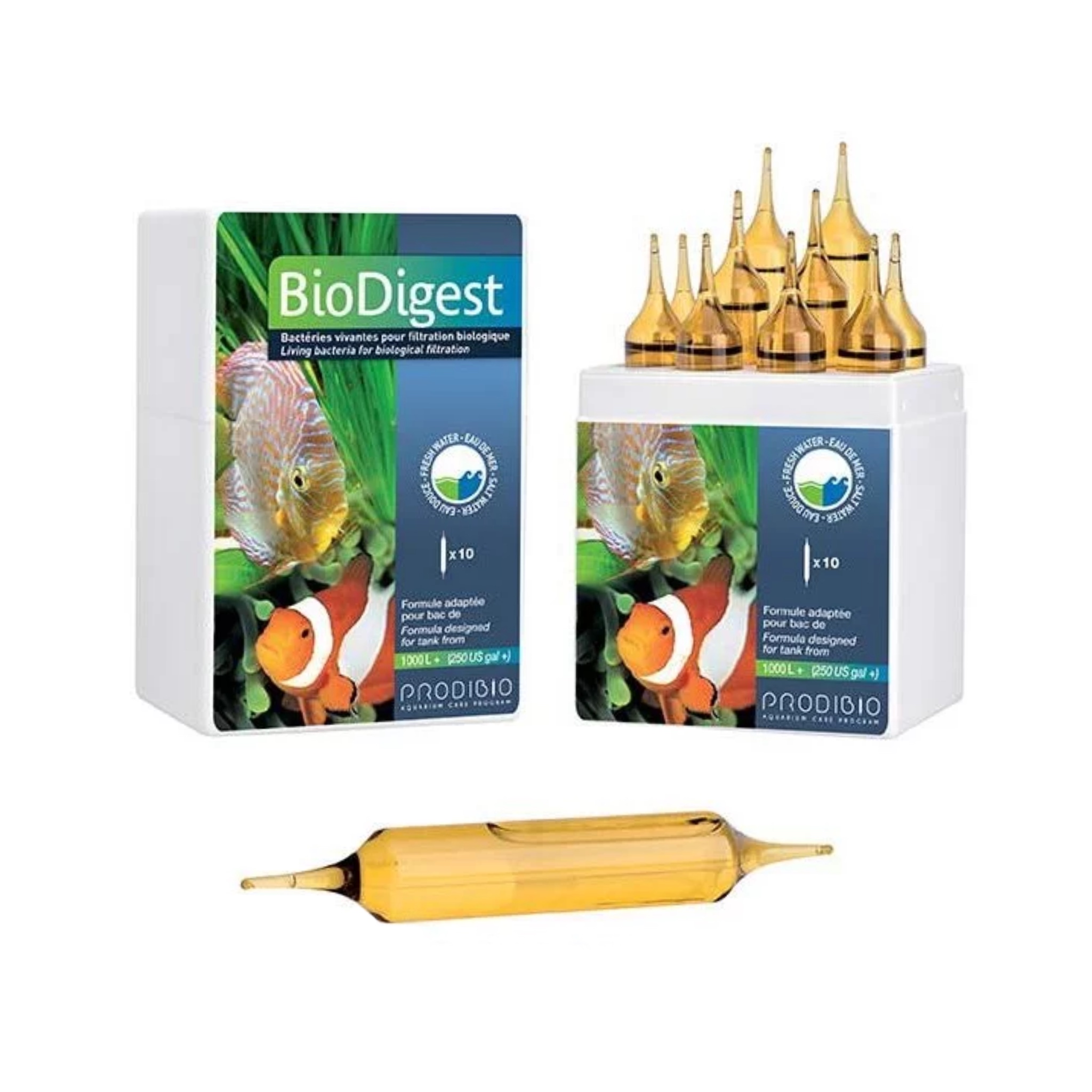 BIO DIGEST - гипер-концентрированный бактериальный препарат, выполняющий две функции: налаживание процесса биофильтрации и удаление из аквариума органических загрязнений. Выпуск в заправленных азотом ампулах обеспечивает длительное хранение и существенную экономию, ведь каждая ампула полноценно используется.