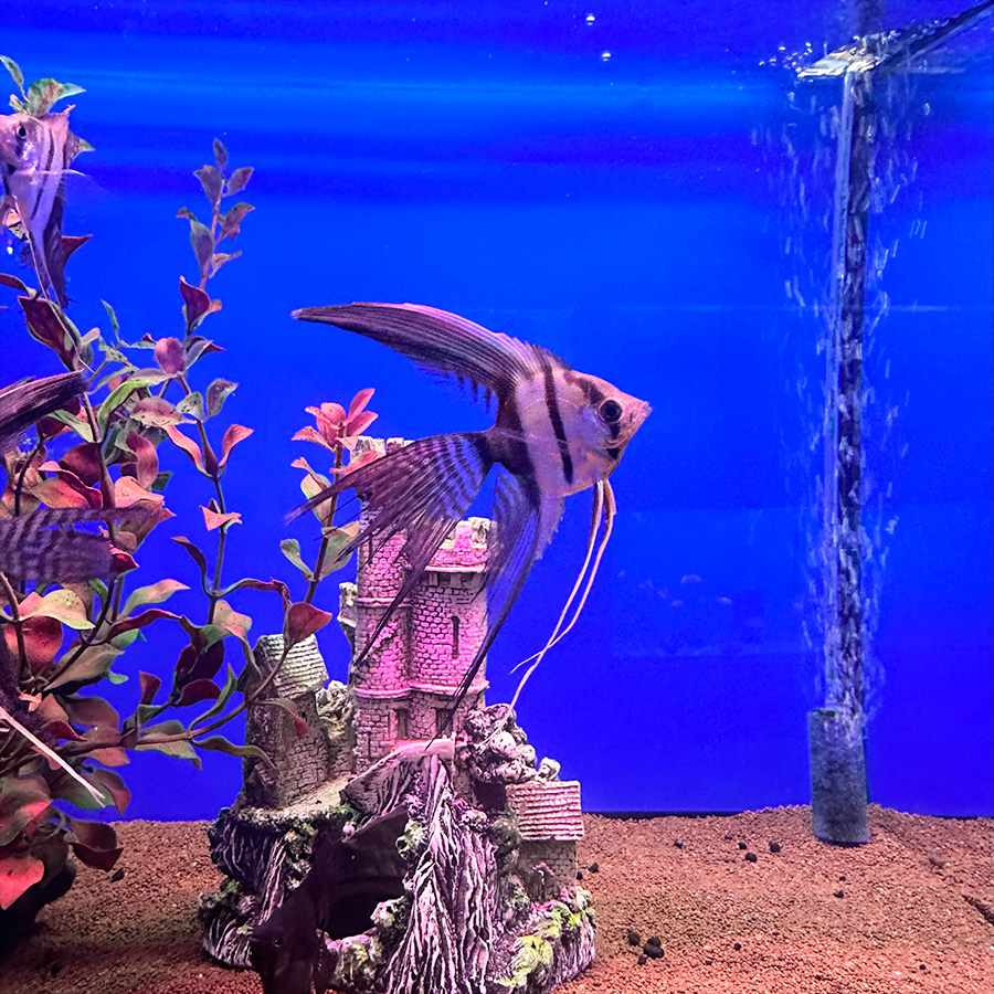 • Грунт: тёмный, мелкий — подчёркивает окраску рыб и не травмирует