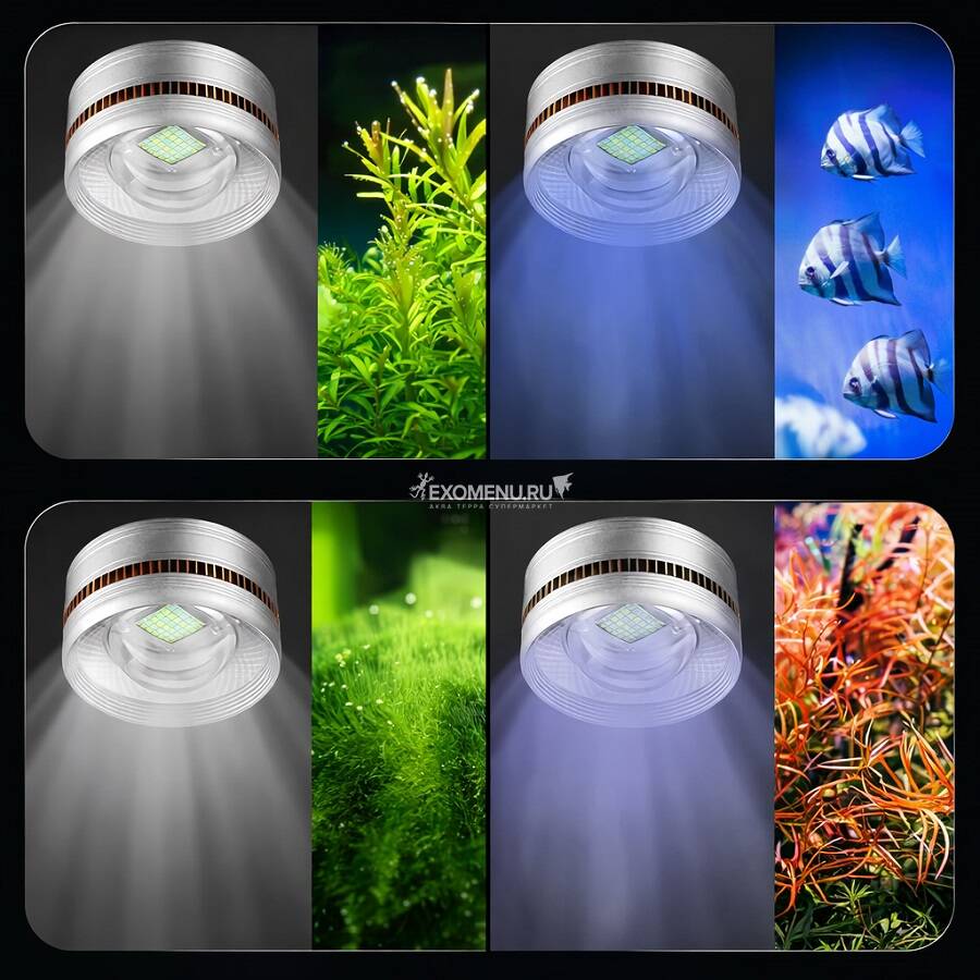 • Обеспечивает яркий и качественный свет, который подчёркивает естественные цвета рыб и растений.
