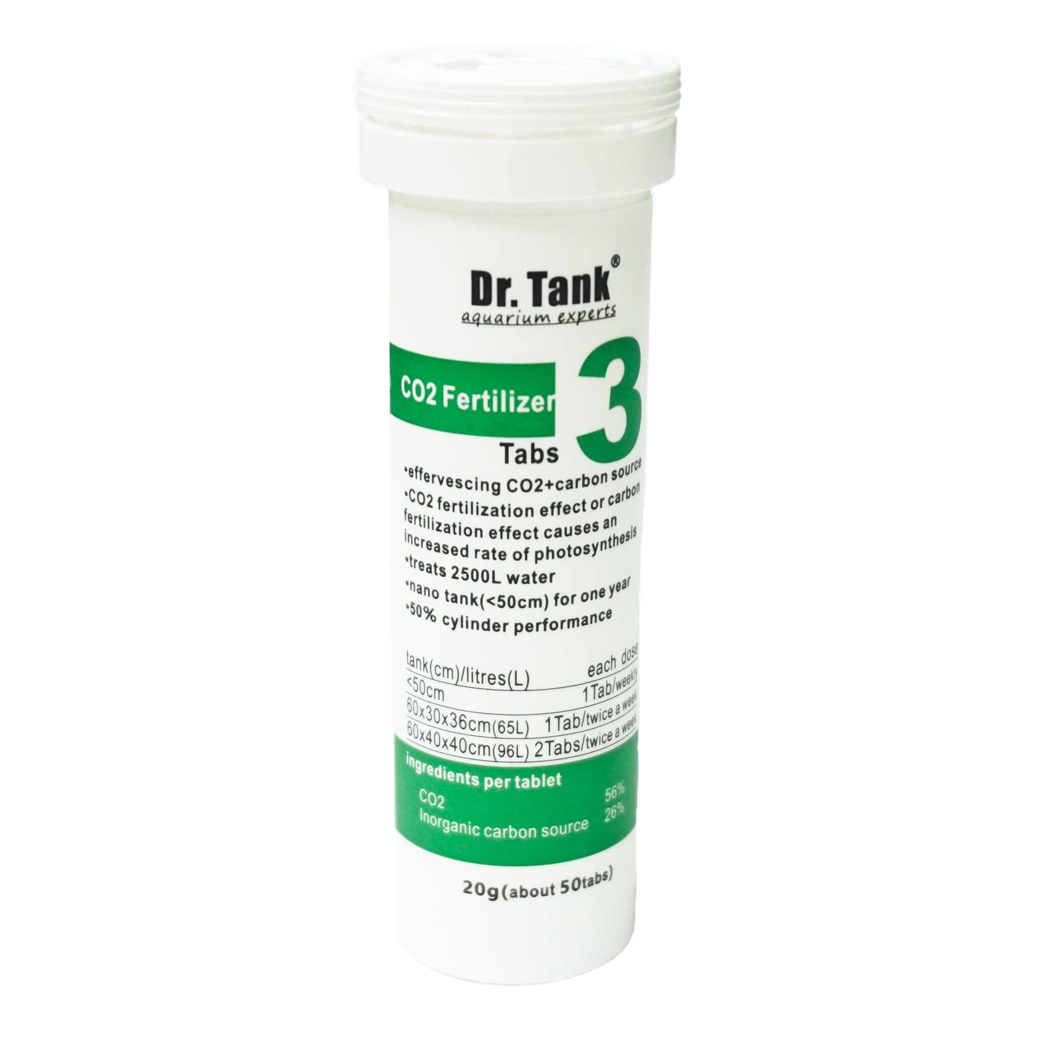| Таблетки CO2 Dr.Tank (20 гр, около 50 таблеток) Источник неорганического СО2 в таблетках. Использование таблеток в аквариуме: Поместите таблетку в аквариум или в специальный реактор (при его наличии). Реакция одной таблетки будет идти около 20 минут. Дозировка: • Нано-аквариум от 10 до 60 литров: 1 таблетка в неделю; • аквариум до 65 литров: 1 таблетка два раза в неделю; • аквариум от 65 до 100 литров: 2 таблетки 2 раза в неделю. Состав: СО2: 56%, неорганический источник СО2: 26% При работе с СО2 таблетками соблюдайте правила безопасности: •Храните в темном и прохладном месте; •Храните в недоступном для детей и животных месте; • Не употребляйте в пищу; •Избегайте попадания на упаковку прямых солнечный лучей; • При попадании на слизистые области глаз, носа и т.д. рекомендуется обратиться ко врачу. |