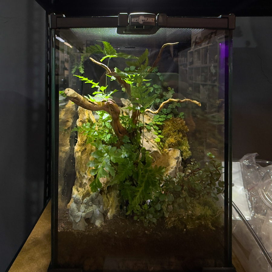 Компактный флорариумный набор. Можно установить как самостоятельный элемент декора, также подойдет для содержания богомола.