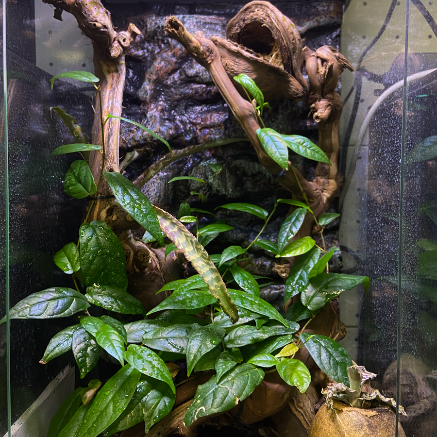 Террариумный комплект для содержания тропических лягушек, в частности лягушек древолазов. В набор входит следующее оборудование и декорации: