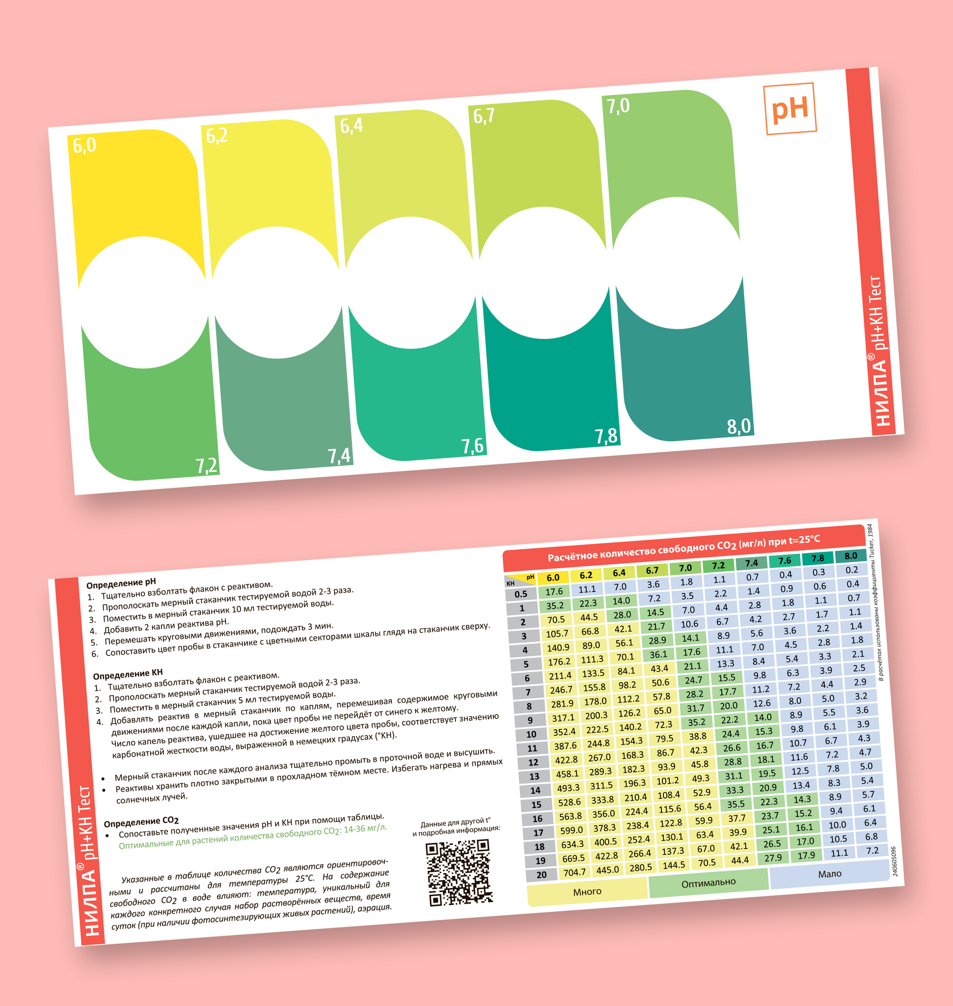 Тест pH+kH НИЛПА для измерения уровня pH, kH и CO2