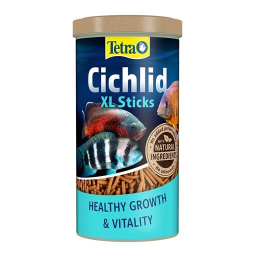 Tetra Cichlid Sticks XL - полноценный корм для крупных цихлид и других всеядных и хищных рыб. Плавающие крупные палочки на поверхности воды принимают вид естественного природного корма крупных рыб, что обеспечивает оптимальное поглощение корма. Состав корма полностью соответствует потребностям организма цихлид в потреблении протеинов и специальных аминокислот.