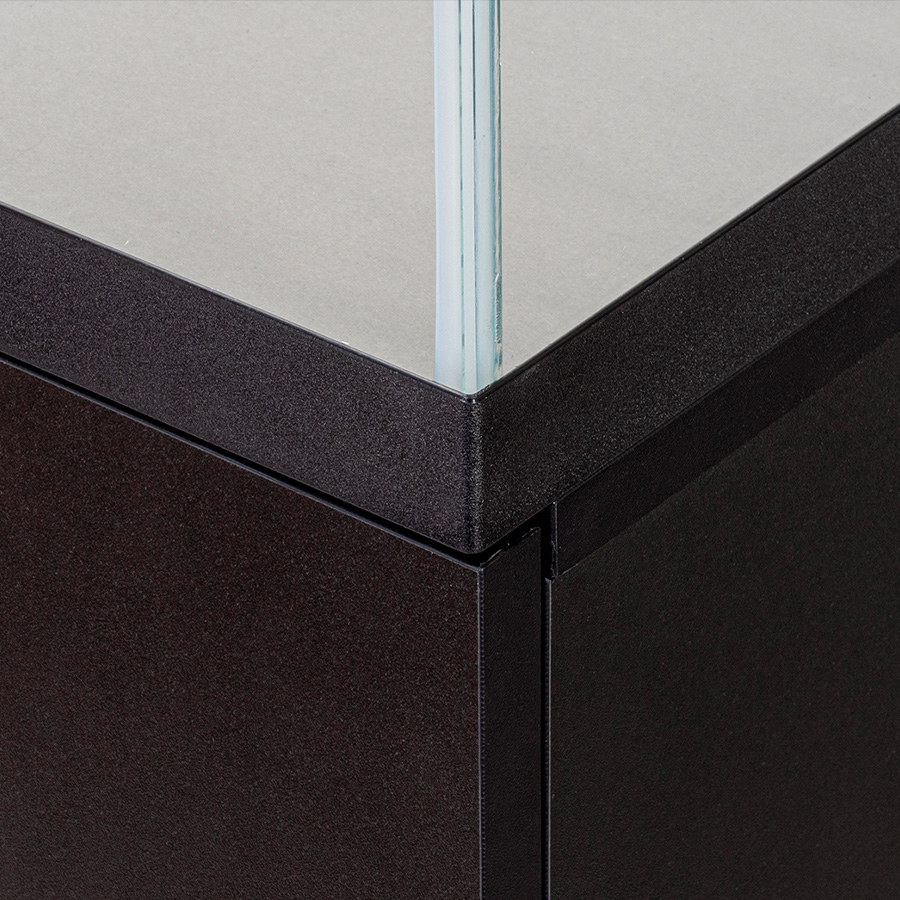 При установке аквариума на фирменную подставку OPTI SET (Опти Сет) дверцы располагаются вровень с передним стеклом аквариума. Это создает единство образа, при этом соразмерность тумбы и аквариума позволяет сохранить визуальную лёгкость.