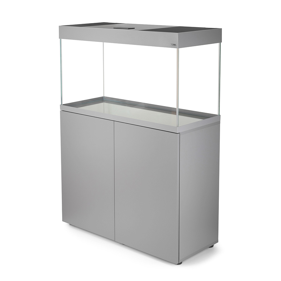 При установке аквариума на фирменную подставку OPTI SET (Опти Сет) дверцы располагаются вровень с передним стеклом аквариума. Это создает единство образа, при этом соразмерность тумбы и аквариума позволяет сохранить визуальную лёгкость.