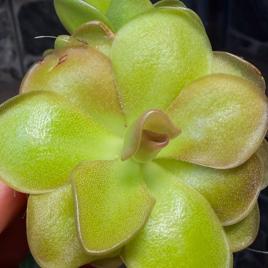 Поливать жирянку нужно часто только в том случае, если в террариуме очень жарко. Для полива используют дистиллированную воду (в крайнем случае – кипячёную). Подкормка жирянки достаточно специфичная, так как растение получает питательные вещества не через корни, а с помощью листьев, на которых растут мелкие волоски. При этом источником полезных веществ являются мелкие насекомые, на которых «охотится» растение.